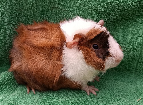 Ein typvolles Mädel aus dem Gemeinschaftsprojekt „Rosetten in Schoko-Gold-Weiß“ mit Kerstin (Zucht „vom Meerchengarten“).